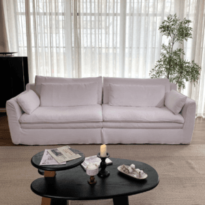 Reimagine your living space with the Linen Slipcover Modular Sofa JS383. This handcrafted sectional sofa combines timeless elegance with unparalleled flexibility. Featuring premium, breathable linen slipcovers in a sophisticated neutral tone, each module effortlessly connects to create your ideal configuration – perfect for cozy corners or expansive lounging.