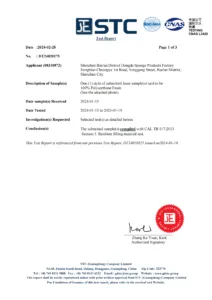 Tested foam (CA117,BS5852 etc..)